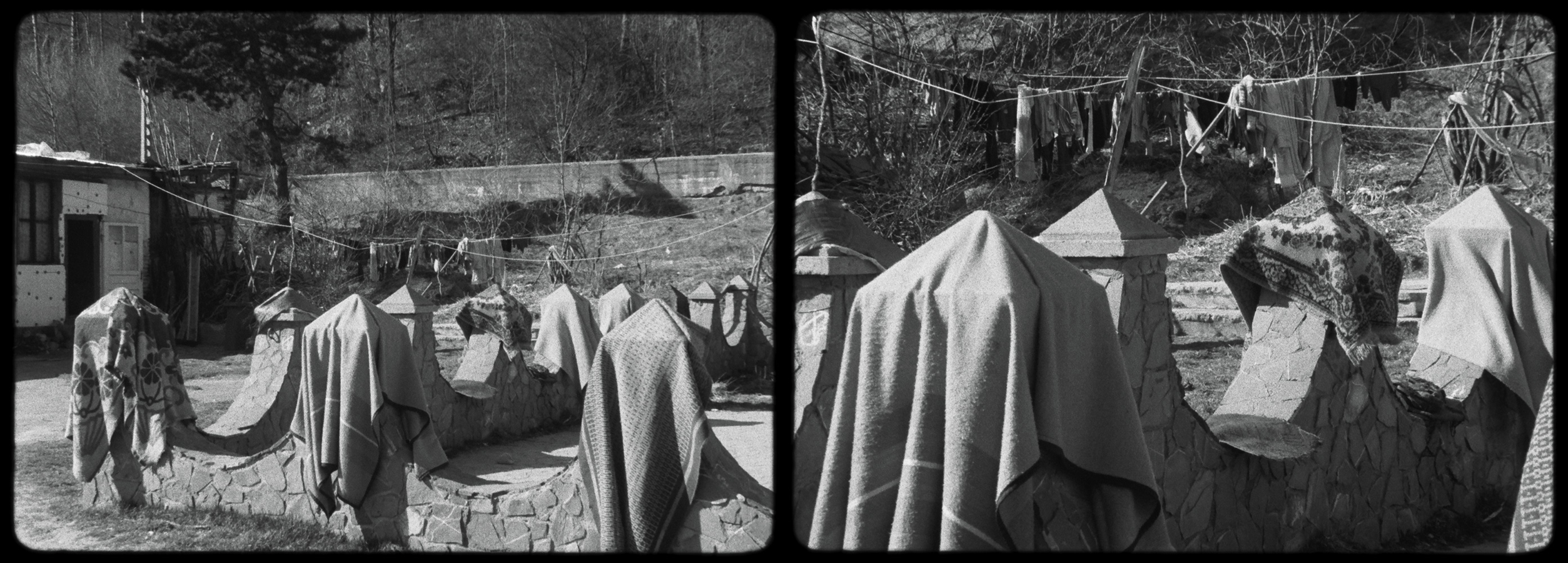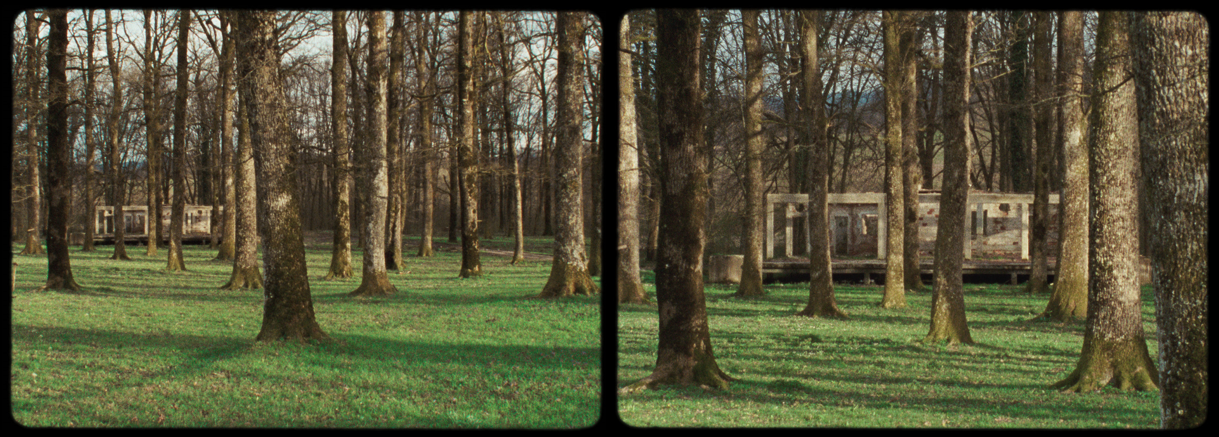 I like to use the term ‘open-ended’ to describe the series of journeys that I undertook with Bernd Bräunlich in Southeastern Europe between 2011-2015. Open-ended engenders a question that cannot be answered with “yes”, “no”, or even “don’t know”; it finds itself in a ceaseless state of its own making. It is this formability and malleability of a processual notion that intrigues me. To resist taxonomies and rational systematization is also to be willing to expose oneself, even to failure. The inherent potential for disintegration or collapse becomes a palpable probability. I sometimes read Days In Between as a recurring attempt at approaching and understanding, the constant failure and beginning anew growing into an integral part of the narrative. In doing so failure became intrinsic to a process of creating open systems and raising questions. A cognitive and rational mapping of place, politics and history was, throughout the different draft versions of the film, gradually succeeded by a more sensory and tentative one. Through the affective means of responsiveness, receptivity and memory I attempted to trace wider connections that jar with compartmentalized presuppositions. Considering historical memory as almost always being already a matter of distortion is a perspective that runs through the commentary. I was often thinking when editing the film that we might be telling a story (in the sense of a ‘linear’ progression bound to a timeline), but I’m unsure if the film has a, or indeed, any story. The story might rather be one of deconstruction, of dismantling a mental image (or images) of the region. Or even that the story of telling, of asking to be heard, becomes the film’s protagonist and its plot. The act of returning, the subsequent distortions that these periodic returns engender, and the reflexive engagement with processuality’s reverberations inscribed in the film’s narrative create a compositional discord. This dissonance makes one thing clear: the object of the film is not self-evident, it does not pre-exist.