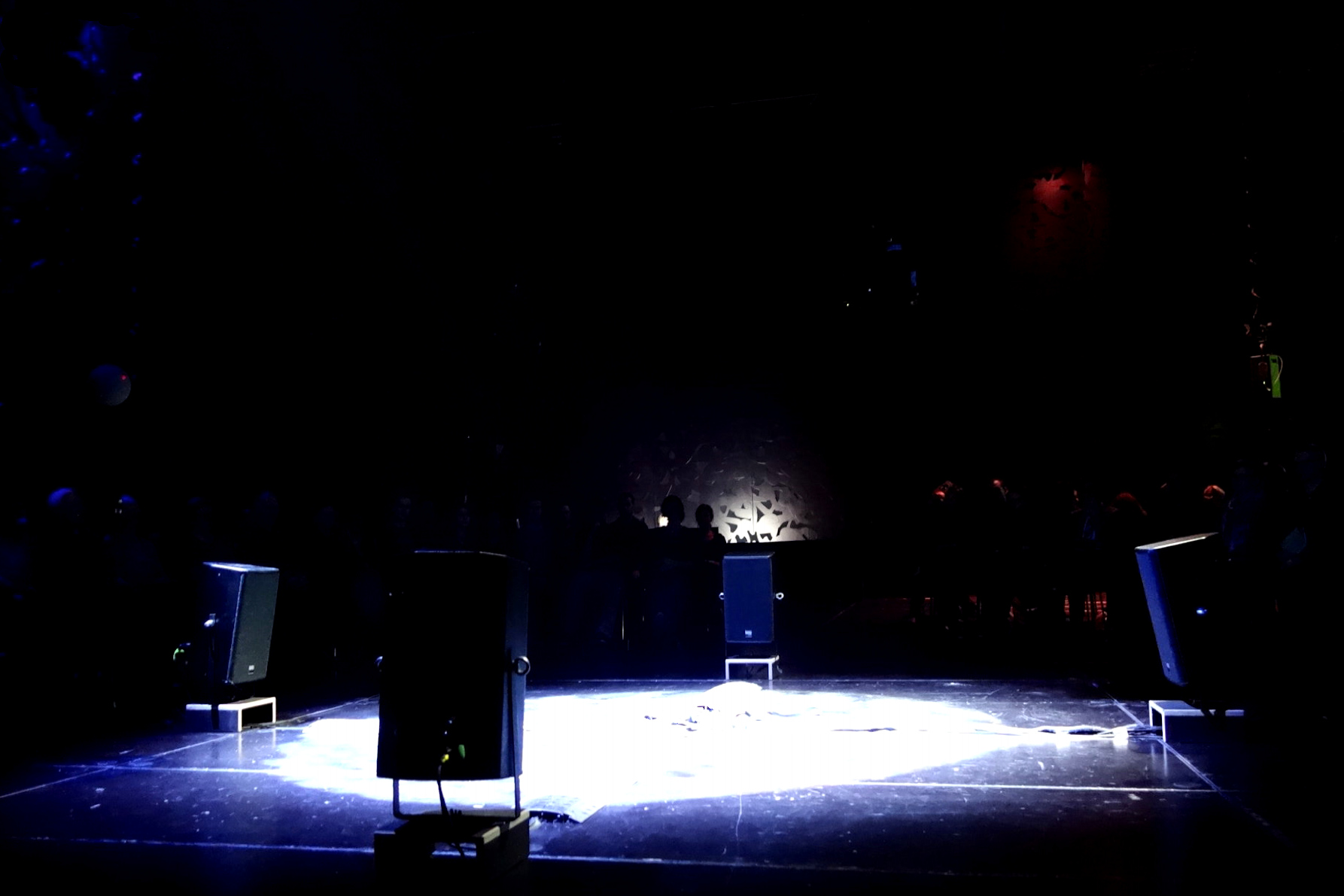 Unfortunately, for these same reasons, the visual and aural documentation I can here present is rather limited. As already explained elsewhere, making photographs of the speaker-configurations at the Ligeti Hall is a problematic task, demanding different strategies to show some perspective or other; an aural representation, on the other hand, would absolutely imply a virtual model of the setup, which, as mentioned, I did not have. Both these questions require ‘leisure’ time in the hall to work them out. We are left hence almost exclusively with the power of words, and through these I will try to transmit those aspects of the piece and its composition which may be more relevant for the documentation of this project.
