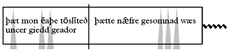 However, is the division of a composition into seemingly arbitrary sections really an example of a commentary on a text? Can such a process even be described as commentary when the source text is itself obscure and unknown to all but a handful of literary specialists? In Ungelīc is Ūs, the division of material into sections is perhaps more understandable as an underlying structural principle, rather than something that will have direct relevance to the listener’s interpretation of precise words and phrases. It is a subjective response, one of many other possible solutions to the research questions posed during the process of this project. In each section of the composition, samples of vocal material are transformed into different pitches and timbres to suggest a proliferation of voices. However, the material keeps returning to the relatively unaltered voice of the solo mezzo-soprano. At a structural level, the arrangement of different types of material was intended to highlight the duality of presence and absence, desire and abhorrence, nostalgia and regret that pervades the text, summarised by the contradictory sense of separation and intimacy in the poem’s final two lines.