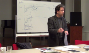 Rasch X generates an intricate network of aesthetic-epistemic cross-references, through which the listener has the freedom to focus on different layers of perception: be it on the music, on the texts being projected or read, on the images, or on the voices. Situated beyond ‘interpretation’, ‘hermeneutics’, and ‘aesthetics’ the series Raschx is part of a wider research on what might be labelled as experimental performance practices—practices that productively deviate from conventional (repetitive) performative strategies and that lend the audience to think during the performative moment, transforming familiar artistic objects into objects for thought.