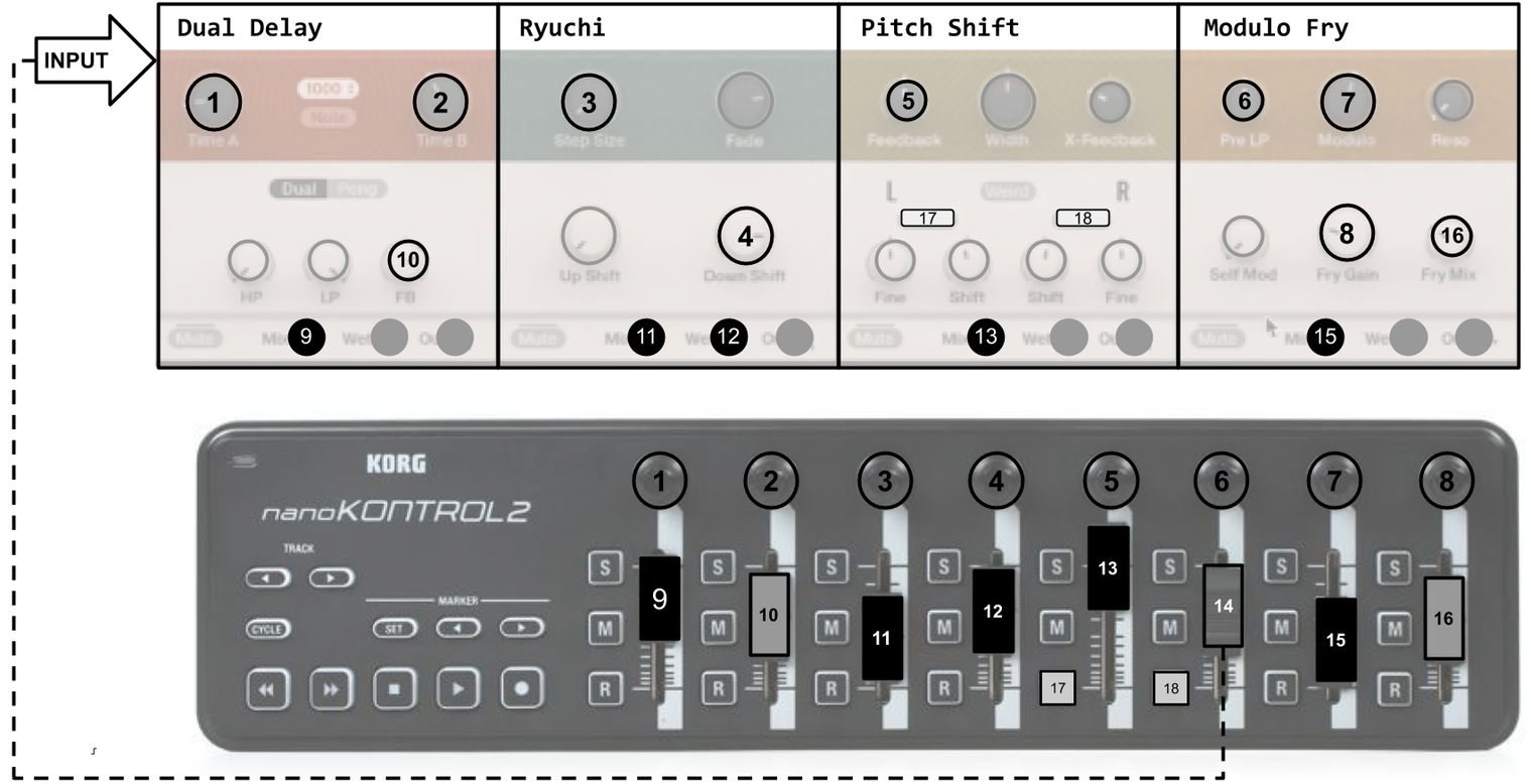 Mappings for Adrián's Digital Musical Instrument (DMI) when performing manifold