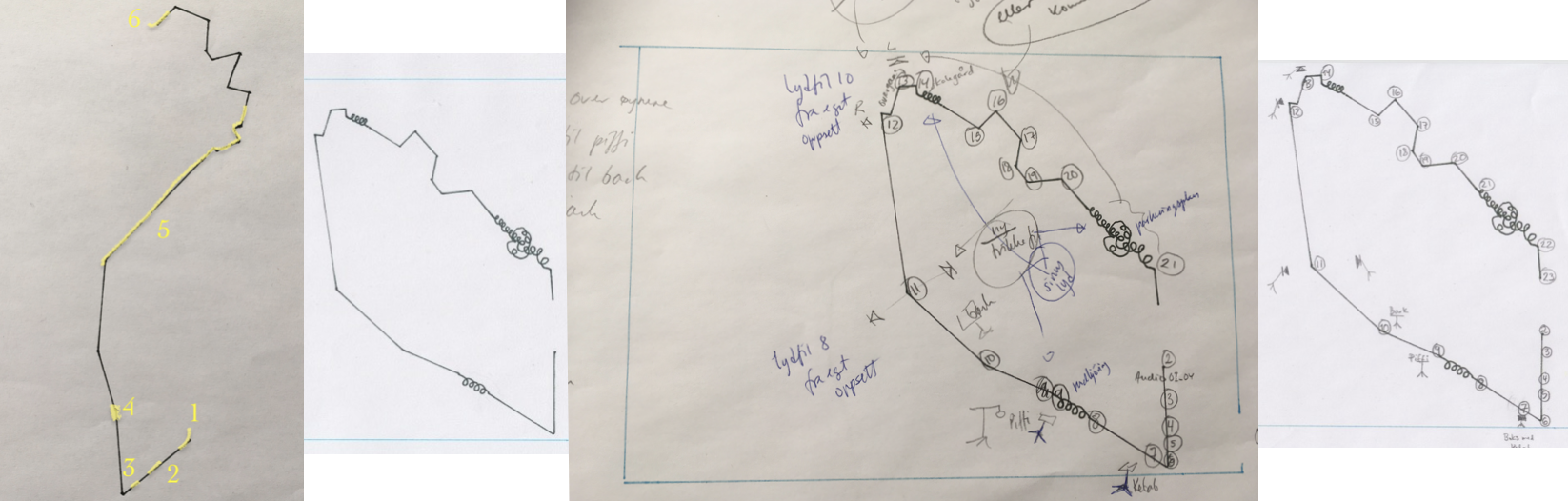 Utprøvningen vi nå hadde gjort, var noe i seg selv. Men det var også et materiale som kunne vært videreutviklet gjennom ytterligere utforskning innenfor et likt oppsett, med basis i den samme situasjonen og relasjonen med publikum. Jeg satt dessuten igjen med et inntrykk av at det hadde vært mulig å bearbeide materialet slik at det kunne fremstått som mer abstrakt. Jeg var simpelthen fristet til å undersøke de mer lydlige og fenomenologiske sidene av det vi hadde utforsket, kanskje i større grad enn de mer biografiske og språklige. Det gjorde jeg ikke. Muligens hadde det noe med forsinkelsen som oppstod i prosjektet å gjøre. Mellom mars og november 2018 arbeidet jeg med andre prosjekter. Eller så hang det rett og slett sammen med ønsket om å utforske materialet kollektivt, både i prosessen, men også gjennom fremførelsen.