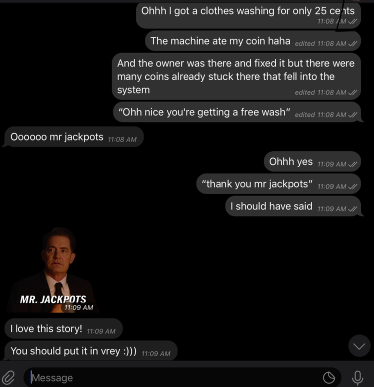 By the way, just a note, I think the beauty of the Telegram and Slack channels reside on the multiplicity of selves they accept. It's so comforting to know that the ghosts of me can talk freely, being so incompatible with one another. One of the doctors I visited during my life said that I had a multiple personality disorder hahaha. Well, not sure if it took as a compliment or as a menace.