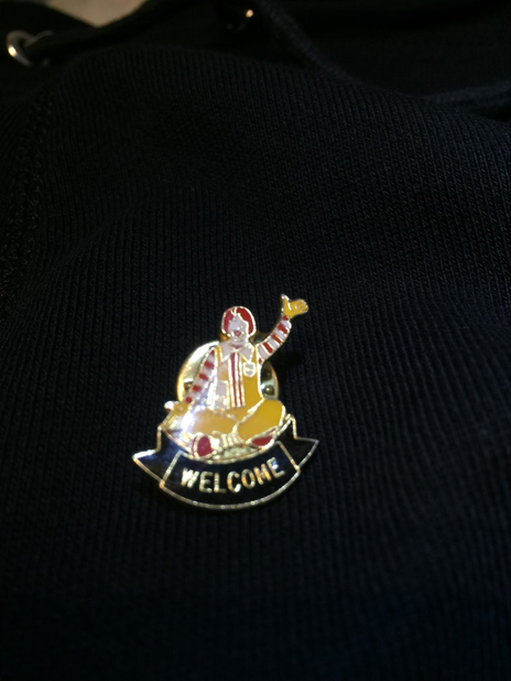 If you don't show necessity in a typical way, it's not a real or actualised necessity for neurotypical eyes, and the ball continues to roll again and again over the bodies that are liminal or thin that cannot fit under an identity. I love the idea of liminal bodies or glorious bodies that come from early Christian/pagan philosophy or oikonomia, ghostly entities that have membranes that are so thin that they can be seen erroneously as purely incorporeal. Sometimes I think my body doesn't exist and I feel that kind of email messages or presentational showing only put more weight on a body that's already shattered and tending to the complete disappearance in favour of greedy interests of the truck-machine of typicality. Also I always like to insert the “glorious body” using a different font each time, a font face that would undoubtedly be part of a visual identity you would see in one of those very American delis that here in Montreal are full of smoked meat sandwiches, typically something like a red background and these cursive letters: “glorious body”, or like the one on my new pin of Ronald McDonald that says “welcome”.