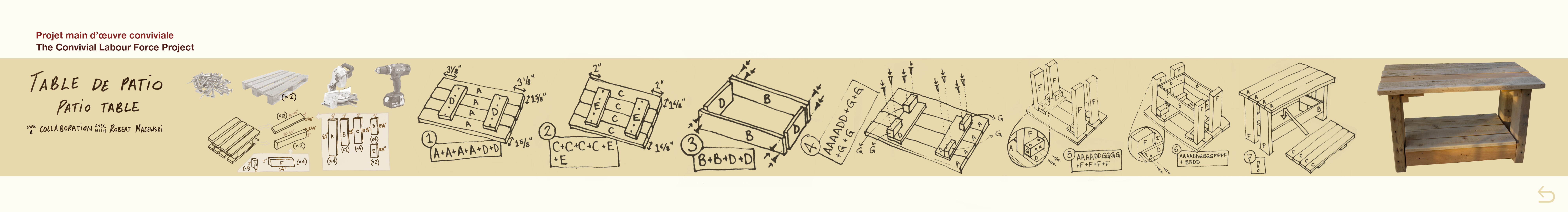 The Convivial Labour Force Project fits somewhere between the nomadic fablab and the anti-business. Flirting with the limits of a free maker space and applied conviviality, the project is inspired by a desire of reappropriating social economy and questioning the meaning of transaction within mutual aid. The goal is simple: to offer one’s free collaboration in a diversity of projects - through cabinetmaking to sewing including cooking and horticulture – all while aligning the co-performed tasks with the principles of economic degrowth, conviviality and horizontality. ________________________________________________________ Projet main d’œuvre conviviale s’inscrit quelque part entre le fablab nomade et l’anti-entreprise, aux limites du maker space gratuit et de la convivialité appliquée, inspiré par un désir de réappropriation de l’économie sociale et une remise en question de la transaction dans l’entraide. L’objectif est simple : offrir gratuitement sa collaboration dans de multiples projets – de l’ébénisterie à la couture en passant par la cuisine et l’horticulture – tout en alignant les tâches ainsi co-effectuées avec les principes de la décroissance économique, de la convivialité et de l’horizontalité.