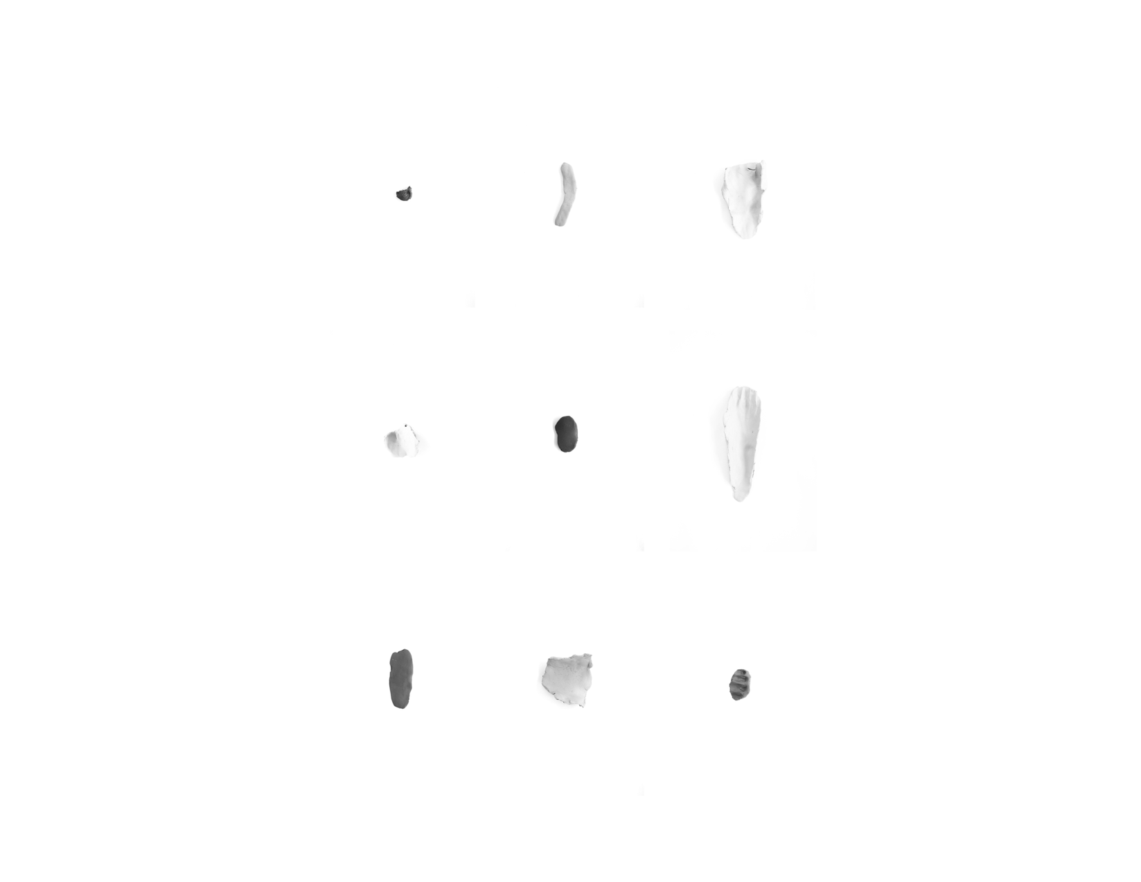La tentavite d’une relecture queer/féministe de l’abstraction a débuté par l’idée du corps. Mais comment faire référence au corps de manière abstraite? J’ai débuté avec des expérimentations autour de l’empreinte de mon corps, pour ensuite me rendre compte que ce qui m’intéresse n’est pas nécessairement mon propre corps, mais l’empreinte en soi, comme trace abstraite. Que ce soit pour son affect que son esthétique, l’empreinte m’est rapidement apparu comme une voie d’exploration. J’ai effectué une collecte d’empreintes auprès d’amies féministes, pour tenter d’étudier la tension entre le corps queer/féministe et l’abstraction, puisque cette piste me m’apparaissait féconde pour l’hybridité de ces deux concepts. Ces amies qui se sont prêtées au jeu de la collecte me posaient quelques questions, tout en me faisant confiance. L’empreinte est du commun au poste de police en cas de dossier criminel, mais qu’en est-il d’une collecte “artistique”? Relève-t’elle de la trace sous forme de mémoire? D’un romantisme? Ma réponse est qu’elle agit comme un monument; elle agit comme fabulation. “Il est vrai que toute oeuvre d’art est un monument, mais le monument n’est pas ici ce qui commémore un passé, c’est un bloc de sensations présentes qui ne doivent qu’à elles-mêmes leur propre conservation, et donnent à l’évènement le composé qui le célèbre. L’acte du monument n’est pas la mémoire, mais la fabulation.” La fabulation, selon Deleuze, “n’a rien à voir avec un souvenir même amplifié, ni un fantasme. En fait, l’artiste (…) déborde les états perceptifs et les passages affectifs du vécu.”. Cette fabulation serait liée à une expérience, à un vécu. L’empreinte de mes amies, liées à mon expérience des discussions et de nos présences ce jour-là m’évoquent un état affectif. Pour la personne qui regarde, ces oeuvres peuvent renvoyer à leurs propres expériences et à un affect par des éléments vécus. Comment agit l’empreinte, archétype depuis le début de l’humanité, sur nous? De quel type d’affect opère l’empreinte?