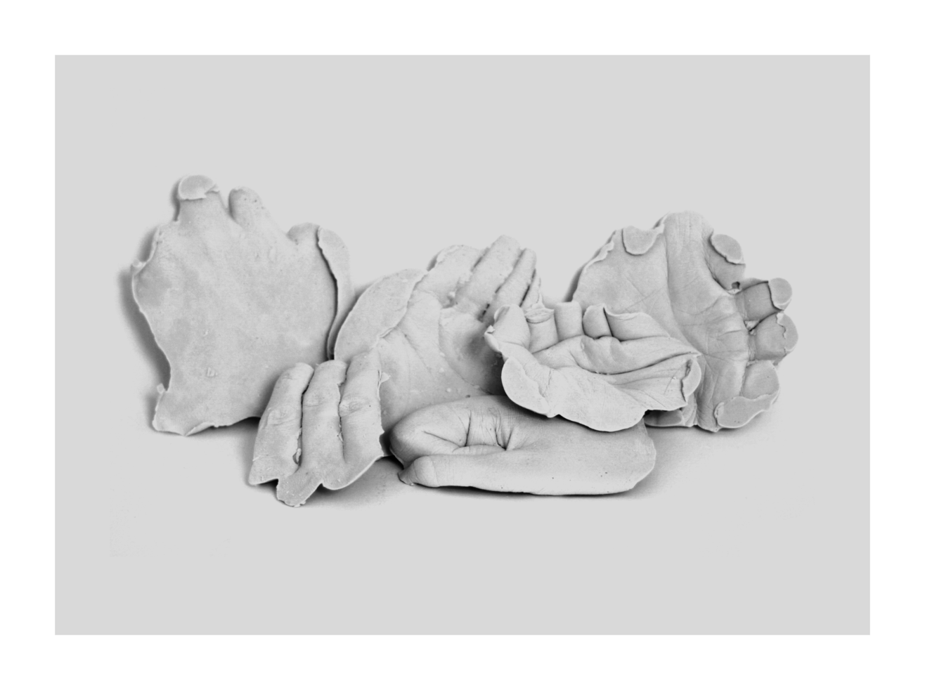 Les modelages créer dans ces oeuvres se retrouvent sur un spectre du genre puisqu’on ne peut pas les caratériser de “féminins” ou “masculin”. Les frontières se retrouvent brouillées autour genre, mais aussi au niveau de la lisibilité. Nous pouvons croire de l’image (fig.1), lorsque vue de loin, consiste en deux taches, au premier regard. En s’approchant, la complexité du détail et du mystère se relève. Une esthétique du soin, du détail, du miniature se dégage de ce présent travail. Pour cette tentavite d’une relecture queer et féministe de l’abstraction, j’ai exploré la théorie du “drag abstrait” selon Renate Lorenz via l’agencement selon Deleuze. La méthode qu’énonce Lorenz, le “drag” rend apparent des modes d’assemblages, “des connections productives entre le naturel et l’artificiel, l’animé et l’inanimé, tout ce qui permet de produire des connections aux autres et aux choses plutôt que de les représenter ». L’agencement selon Deleuze serait politique, tout en étant la combinaison ou l’union de deux choses. Dans mon présent travail, la combinaison d’un corps politique, queer, féministe et du matériau esthétique est cette combinaison. Dans cet exercice, je tend à vouloir me dégager de la représentation, d’aller plutôt vers l’abstraction par l’agencement de modelages liés au corps. Mes oeuvres en plus d’être des agencements par leur contenu, elles font acte d’agencement entre elles par leurs médiums différents. Dans cette série, je prend une position assumée où je me dégage de l’idée de série unifiée, pour le bien-être de l’exploration. Tout commence par l’action de mon corps, pour terminer par un agencement. Si je ne ne maîtrise pas encore complètement ces théories, cette session-ci m’a permi d’élargir mes références théoriques et de poser des bases autour de mon futur sujet de recherche pour le mémoire. Mes oeuvres, à échelle du corps, explorent donc la question de l’agencement sous une lunette féministe et queer via l’asbraction. Par des modelages du corps, une empreinte, une texture est prélevée du corps à la matière. Agissant comme une trace, une mémoire, la théorie de drag abstrait soulevée par Renate Lorenz dans son livre Art queer est présente. Mes lectures en cours autour des théories queer, des écoféminismes et de la philosophie m’ont amené à des réflexions sur l’affect, la mémoire, la trace pour la création de cette série.