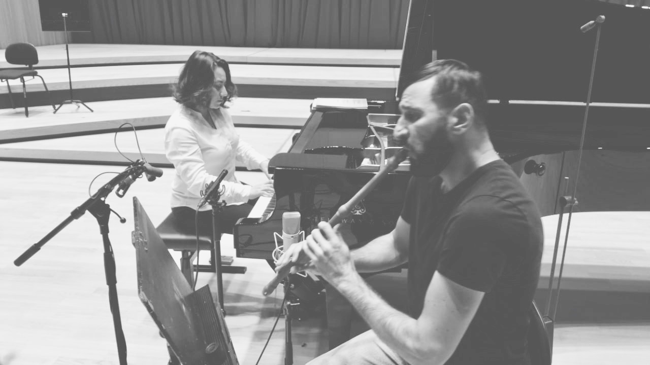 We recorded the songs with Vigen Balasanyan at KildenTeaterogKonserthus during October 2018. However, the idea was conceived much earlier; as far back as 2016, during my meetings with Vigen in Yerevan, we started carefully selecting the songs and deciding for which of them, and with which folk instrument, he would play the melody, originally written by Komitas for voice with piano accompaniment, based on his ethnographic findings written down from hearing peasants sing, and later made into masterpieces of his own. I did not have need to play all of the folk songs of Komitas, but rather to select those which spoke most close to my heart and helped explore my understanding of folk music aesthetics. Throughout the next two years, when I was visiting Yerevan, Vigen and I would continue to meet and work on songs, often completely changing the character, tempos, timing and expression of the music, transforming it significantly and preparing to share it in live concert and through the recordings in Norway. The crucial aspect of the recording that we made in 2018 was to find the perfect balance and to set the distance of the microphones and set up the acoustics in a way in which it would allow us to capture the close, dry, but detailed sounds of the duduk and blul, transmitting through the recording the real sense of the folk instruments’ overtones, the breathing and vibrations, and the tiniest shades and colours of timbre, without having it mixed and “lost” in the acoustics of the hall. This sound is more dry and close than the usual balance and mixing methods of classical music recordings.