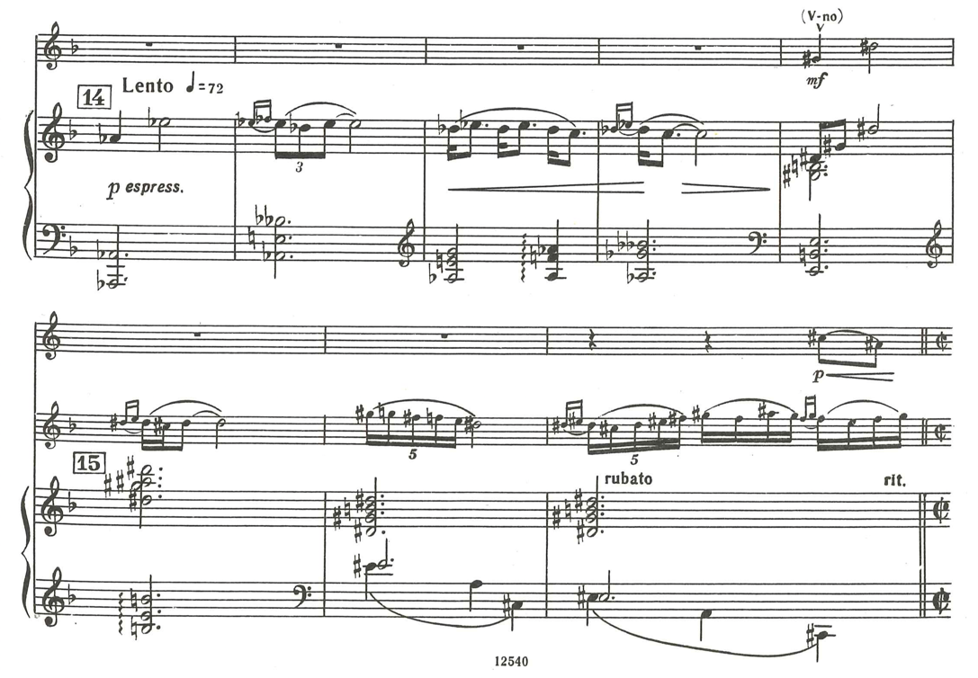 Score example 22, Piano Concerto, 2nd mov., bars 6-16