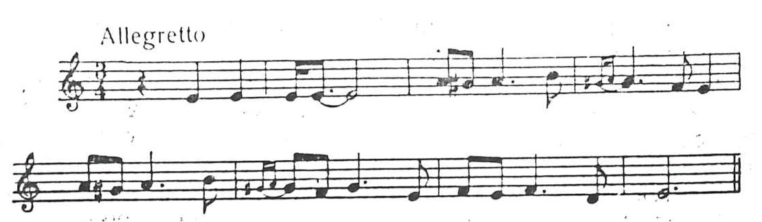 Score example 21, the original melody of the folk song that Khachaturian had as the basis for the theme in the 2nd mov. of the Piano Concerto (Khachaturian, 1972, p. 11).