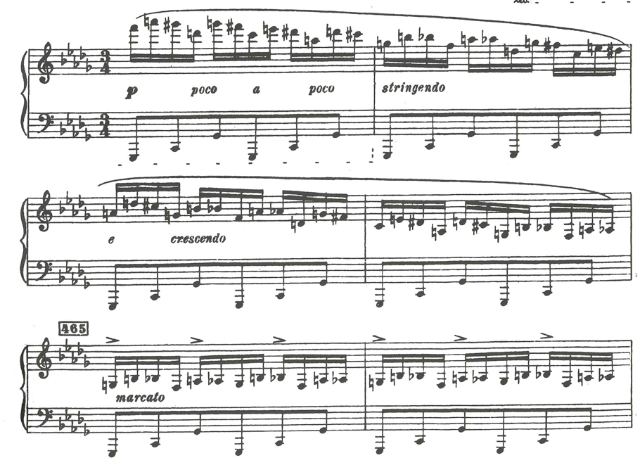 Score example 20, Piano Concerto, Cadenza, 1st mov. bars 461-466