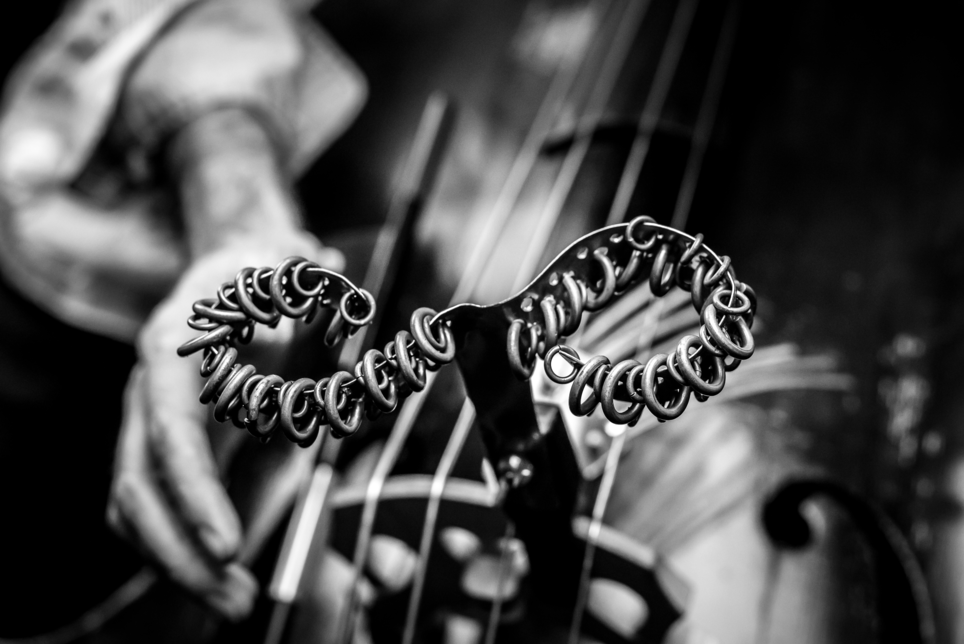Figure 1.3. (Kallio, Nyrhinen, Thomson, 2019). Double Bass with custom made preparations and attchments.