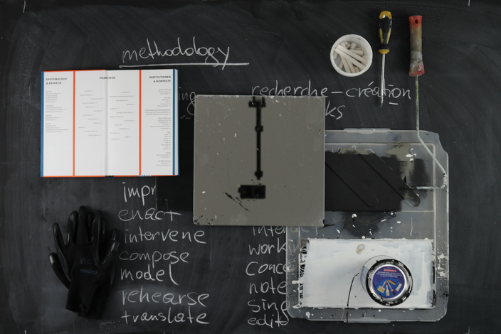 Another consequence of this definition of material is the conclusion that material is always something unstable. It only exists through usage, only in a transformation and exchange between material components, which must always assume a specific relationship with one another. As the above description of the creation of this text illustrates, it only takes but one slight variation of a component for the process to arrive at a completely different result. (If my parents had not invested in my education in the past you would not read this text today.) The only stable point when working with material is the becoming-aware of the “self”. It serves as a hinge between the states of the fluid being-material and the fixed being-object or being-thing. As a stable threshold, it must be constantly crossed in both directions—the separation of the self and the stream of the subject-less material world—in order to bring the material into being or make it disappear out of sight. VThe various forms of instability in the process of becoming material then condense into one point, only to move away from each other again in their inherent restlessness. All this is material.
