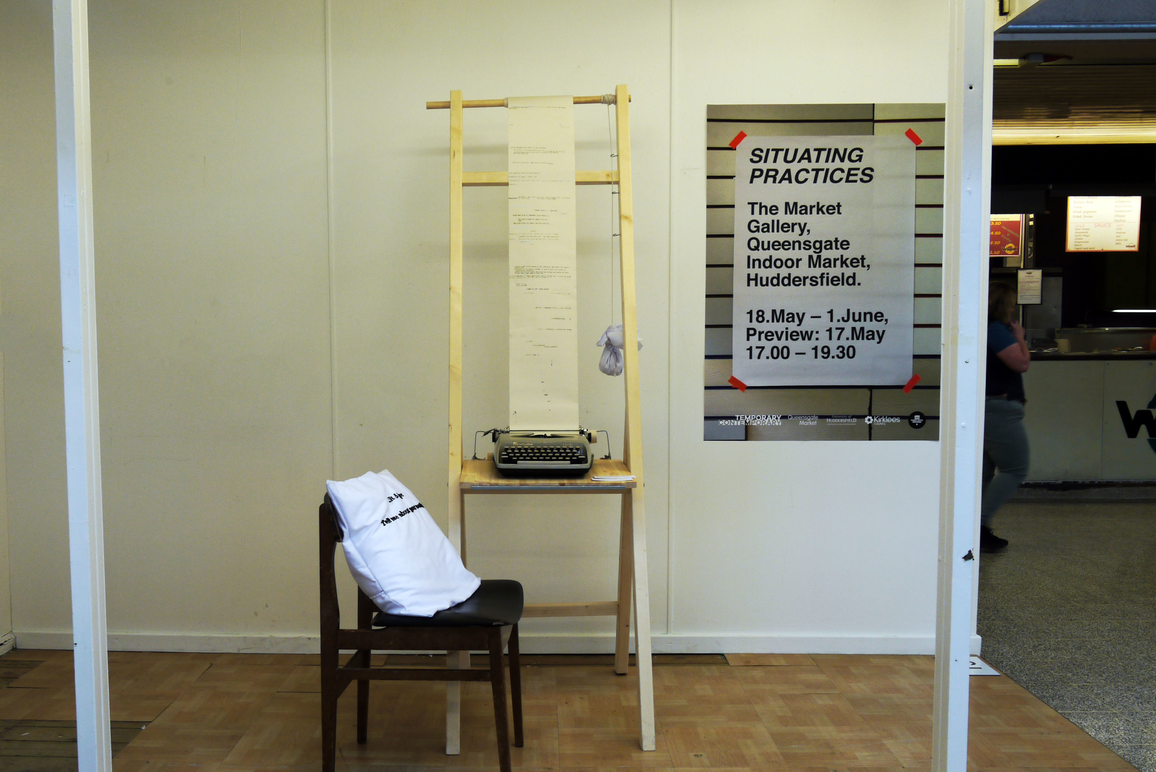 Situating Practices was a group exhibition showcasing the work of postgraduate research students at different stages of their research and from different creative disciplines- this included artist practitioners, architects and researchers working at the boundaries of social science and creative practice. The exhibition ran for two weeks from 17.05.19 to 01.06.19 and was part of the Temporary Contemporary programme, a partnership project between the University of Huddersfield Art, Design and Architecture and the Creative Economies team at Kirklees Council, functioning as a space of live action research in Huddersfield Indoor Market. Nine practitioners were selected through an open call to explore different configurations of (art) practice as research or research as (art) practice. The exhibition sought to engage in a dialogue about what it means to do research in, with and through practice. Influenced by the ideas of “situated knowledges” and “heterogeneous multiplicities” in Donna Haraway’s essay Situated Knowledges: The science question in feminism and the privilege of partial perspective (Haraway, 1988), it explored what kinds of situated and tacit knowledges are produced in practice and how different narratives, making processes and spaces are negotiated within these practices. The works in the exhibition drew on different methodologies and modes of communication in their enquiries, from methods that embed practice within different research sites, such as auto-ethnography and field diaries (Christian Skovgaard Petersen, Beth Morgan), to fieldwork within making spaces and communities (Julia McKinlay, Susan Carron Clarke). Some of the researchers used their creative practice to uncover and illuminate tacit knowledges (Laura Harris) or reveal narratives and histories that would otherwise remain buried (Adrian Evans, Caitlin Kiely). Other practices in the exhibition sought to intervene in and activate public space, using a satellite space within Queensgate Indoor Market as a place of further exploration (Charlotte Eagles, John Carney). Through situating research practices within a gallery space, the group exhibition sought to consider not only how the artefacts of practice-led research function, but what kind of new knowledges and experiences encounters with this work can generate.