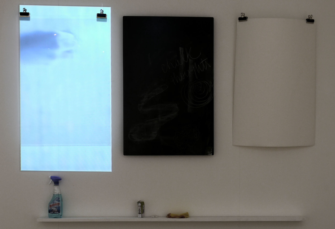 2019, multi-channel video projection onto tracing paper, cartrdige paper, plexi-glass and chalkboard; chalk, window cleaner (photos: Claire Booth-Kurpnieks)