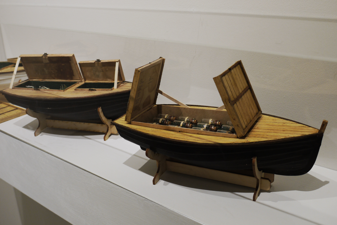 - The vessel is both a container and a fundamental tool of navigation. It contains, and occludes, a cargo. This is a curation- of a cargo of curiosities- and an artefact that tells of a place in the landscape. The vessel, with its cargo of curious artefacts voyages on a diaspora of narrative carrying its place with it."