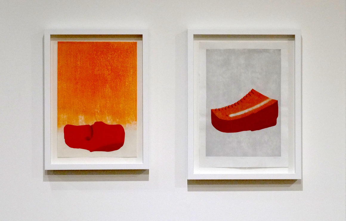 Julia McKinlay- Quarry I and Quarry II, 2018, framed Mokuhanga woodblock prints (photo: Claire Booth-Kurpnieks)