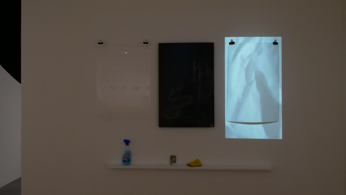 2019, multi-channel video projection onto tracing paper, cartrdige paper, plexi-glass and chalkboard; chalk, window cleaner (photos: Claire Booth-Kurpnieks)