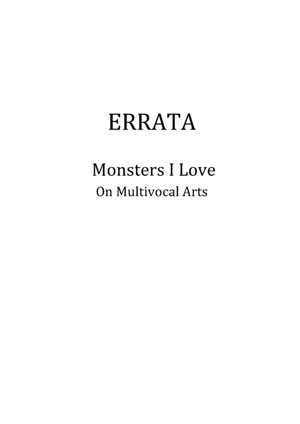 The PDF file contains a list of major errors as found in the documented artistic research project 'Monsters I Love: On multivocal arts' published in Stockholm University of the Arts, 3 (2019).