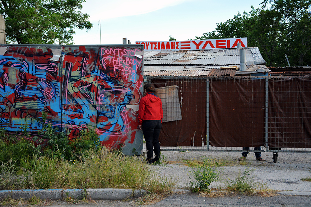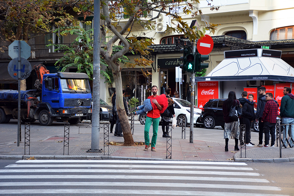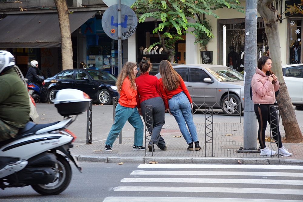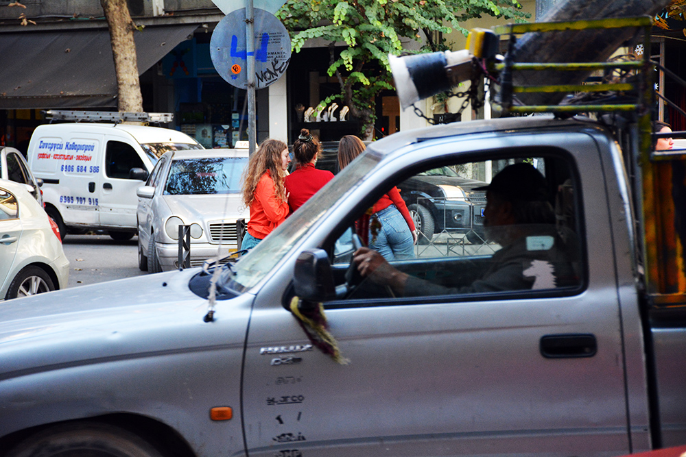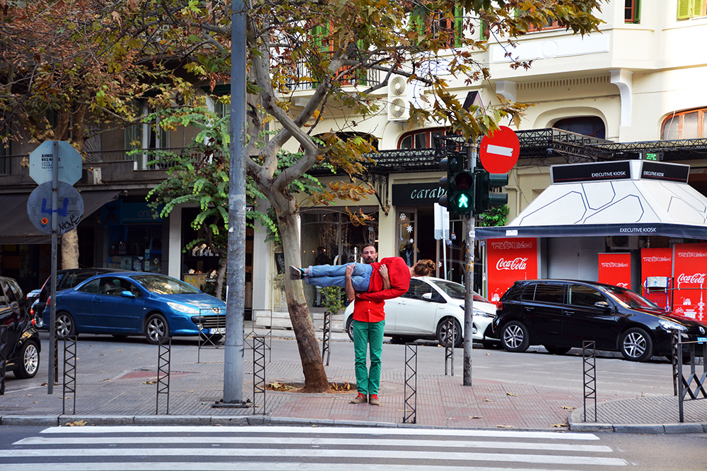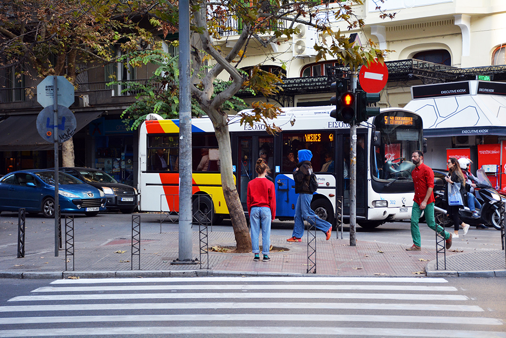 Then we move to Ag. Sofias – a pedestrian street. We go along the street several times as a group, trying to alternate between a ‘natural’ to a ‘strange’ state all the time.