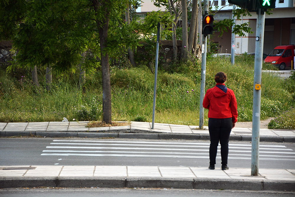 Aggelos played with the traffic light sound, with the crowding in the entrance of the bridge, and with sun and shadow.