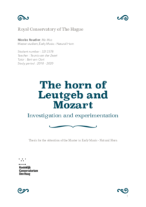 A lot of researches have been conducted on Mozart's work and how to play it, including by myself. Eventhough those works helped our comprehension of this music, we still don't know what particular horn did Leutgeb (the composer's hornist friend) play at the time ; and never have I ever encountered a practical experimentation on such an instrument yet. XVIIIth century horns are rare and never played : every recorded performance of Mozart’s music on hand-horn is played on a copy or a XIXth century horn, which is historically inaccurate. We know a lot of theory ; but no one has gone any further yet. My goal is to step in the unknown : first, to get as close as possible to the horn Leutgeb and Mozart knew ; then, find and play a historical horn from Mozart’s time, and see what impact it has on the playing and the music.