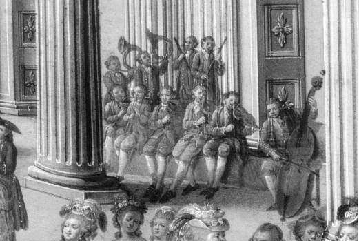 One could go on forever with horn iconography, but the purpose here was to give the reader a taste of what I found. If one kept looking for images of the XVIIIth century, one would keep seeing the same thing over and over again in a very large majority of them : fixed-pitch horns were, even years after Mozart’s death, still played in ensemble concerts… and played bells up. Exceptions are rare. Crooks, and even hand-stopping technique, are almost never pictured (the reader has probably seen them all here). This is 50 years after Hampel improved the hand technique, and 90 years after the invention of crooks.