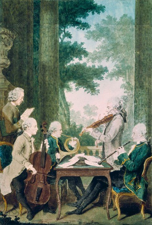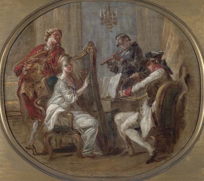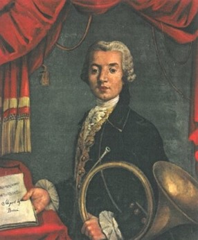 Nothing can inform a researcher better than a picture. I started to seek horn iconography of the XVIIIth century very early in my research and did not know what to expect. The results are extremely uplifting. Here are some of the pictures I found, dated from around the 1760’s to a few years after Mozart’s death. Most of them come from the Facebook group « Portraits of Unknown Baroque & Classical Era Musicians », and the very recent iconography website of John Manganaro1.