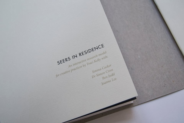 Seers-in-Residence was an interactive research model for creative practices by Traci Kelly with: Emma Cocker, Dr Simon Cross, Ben Judd and Joanne Lee. Seers-in-Residence was an invitation issued by Traci Kelly to Nottingham Trent University researchers to spend time with the evolving monoprint installation, Feeling It For You (Perspective), which was exhibited in Bonington Gallery, Nottingham, January 2013. The project investigated the eclipses and slippages of a live art practice through a series of micro residencies.