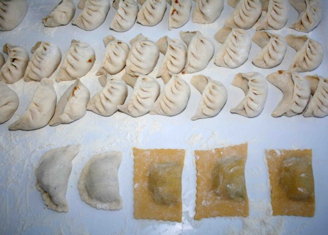 At some point the Chinese dumpling melted together with the Italian ravioli. In the second picture the gradual shift from the traditional jiaozi to the Tuscn-Chinese hybrid. The Tuscan-Chinese dumpling was later posted on Wikipedia. Now is part of a culinary common heritage.