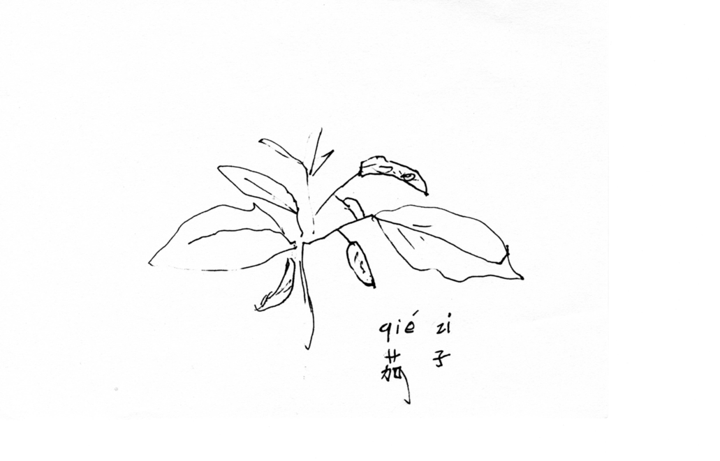 3. 茄子 qiézi, elongated aubergines
