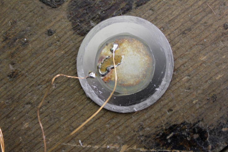 In the second instance (wr_t_ng m_ch_n_), I used a local radio (FM) station signal. The petri-dish arrangement was identical, but this time I experimented with a “distributed sound memory”, using nine Raspberry Pis, each representing two channels or memories which were evolved independent from one another (so you would identify a sound phrase, each time it was returning to the same sector). Also, here the computers and the antenna were visible, and I selected only one type of graphite and combined it with the bodies of dead bees.