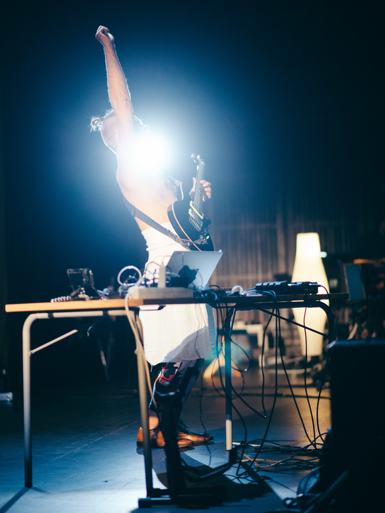 Combining instrumental and electronic music practice has lead to a situation where the body feels rather constrained, having simultaneously to play an instrument and operate a computer and/or various electronic music interfaces. In the case of Electronic Chamber Music, this has led to a predominantly static situation on stage, whereas we feel that our bodies would like to move and be more alive in performnance. Thus, our main question for the Venice Research Pavilion work hase been: how to infuse more embodiment in our performance?