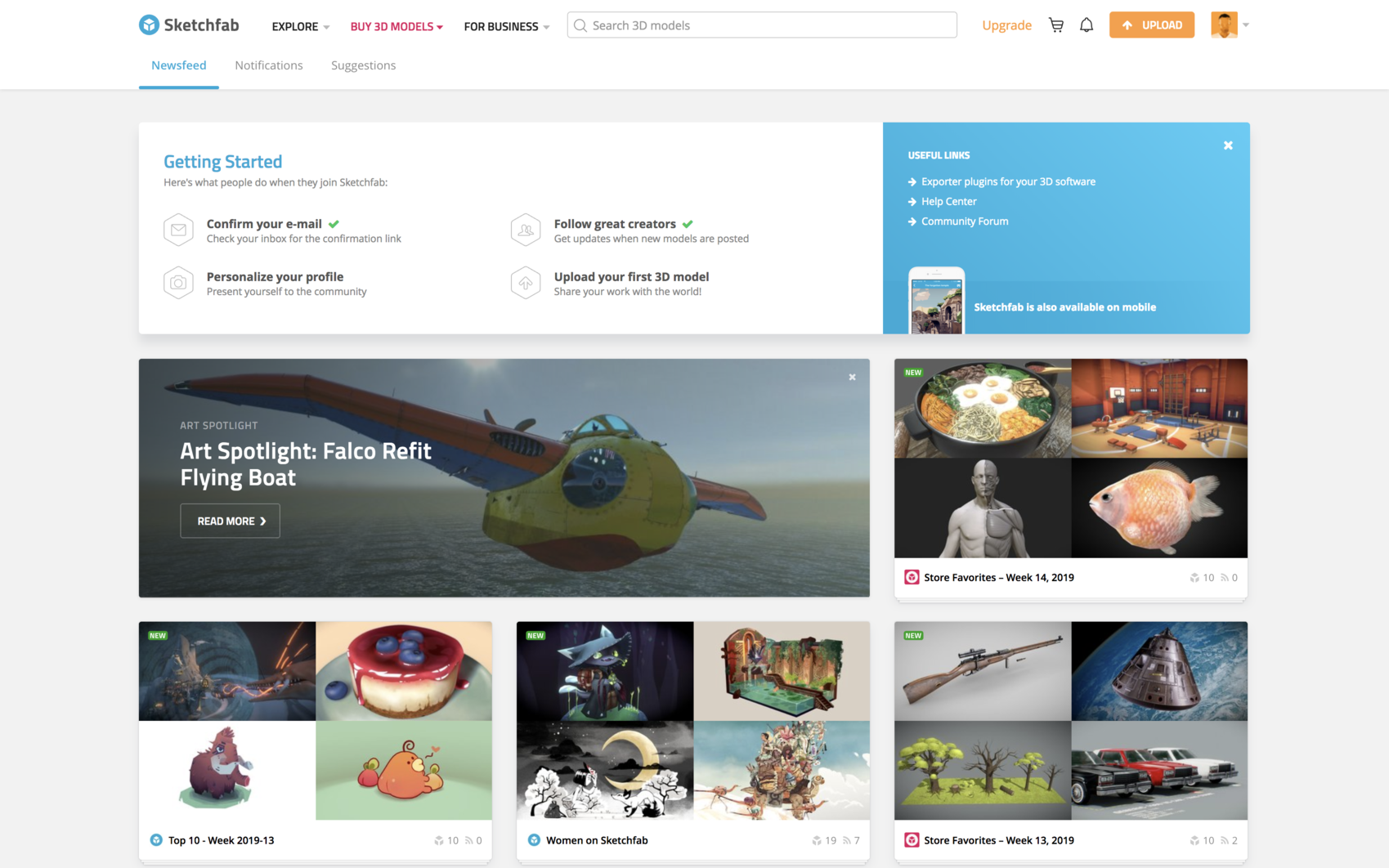 A search box helps users orient themselves among a massive number of 3D models, and also lists with staff picks and user collections.