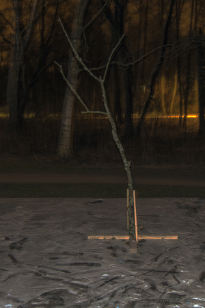 Piece of December: On the 1st of December, I set a broken branch of a tree, found in the woods in the background of the stage, on stage the Beckettian way.