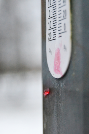 Piece of January: On the 1st of January, I glue a small thermometer on one of the metal banisters of the left bleacher.