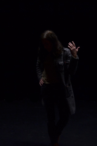 The director meets four actors, one-by-one, that he directed seven years before the meeting, on the same stage where the re-encounter takes place. When they arrive, the performers don’t know the reason of the meeting. The director then asks them to try to remember exactly, in the almost-dark black box, their textual and corporeal parts in the diptych-play that they created together seven years before. The transtemporal performance as contemporary ars memoriae practice is documented through photographs and notes.