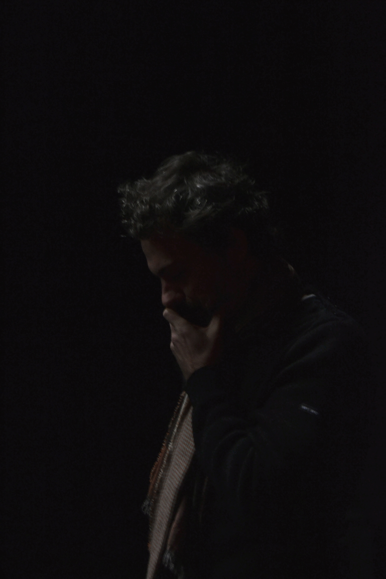 « Le texte ? Rien. C’est catastrophique. J’étais muet non ? J’avais du texte ? Je me souviens d’un rôle muet. Mutique. J’étais beaucoup en regard sur ce qui se passait, sur les autres. Assis là sur un cube.»