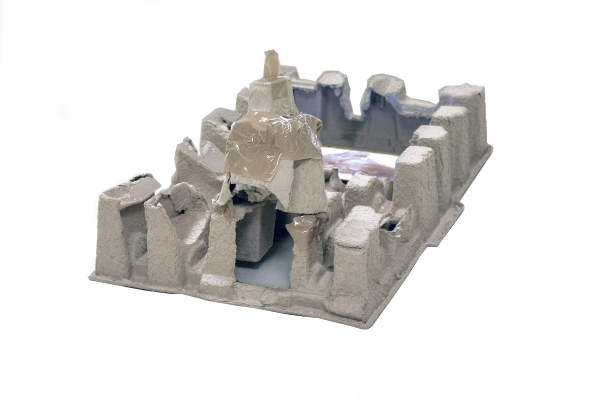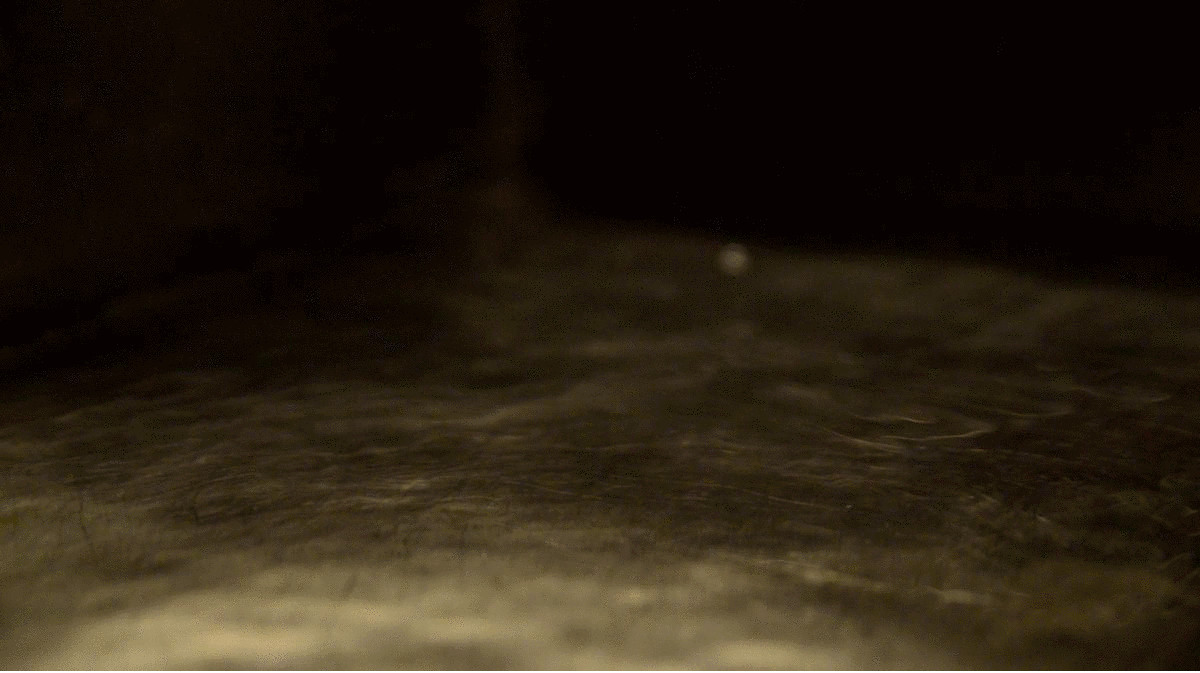 A looping filmed sequence shows a part of the river Kiiminkijoki (Finland) melting in the spring. The ice is perforated in the middle and the hole produces a whirl resembling a hurricane eye with the reflection of the clouds in the just-melted water. The video is displayed on a screen, which covers the stage of the damaged cardboard replica of Steele MacKaye’s legendary collapsed Spectatorium (World’s Columbian Exposition, Chicago, 1893), so that the viewer sees the scene from above, conferring to the spectators a planetary scale. By the replica a handmade prototype of MacKaye's wave machine, realized from a free interpretation of MacKaye’s sketch, is presented on a shelf, accompanied by five projected photographs, shot when the prototype was tested. Additionally, a short biography of MacKaye is displayed on an audioguide.