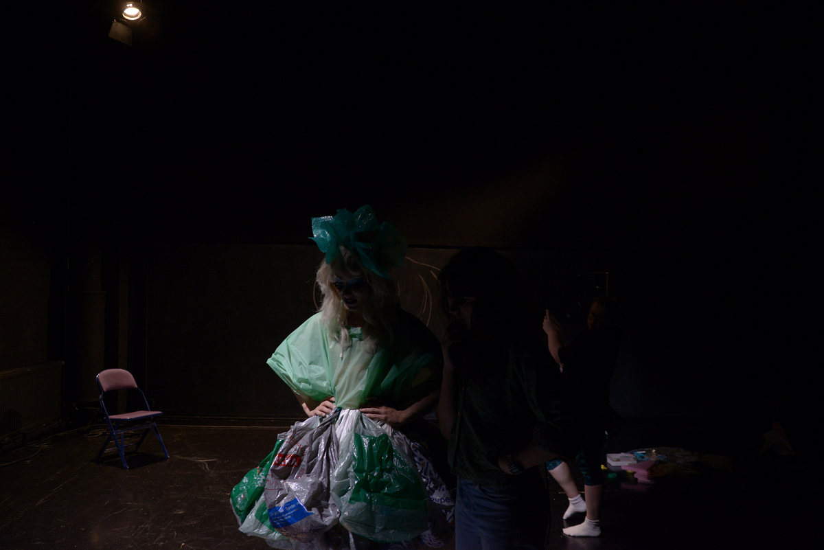 REACCLIMATING THE STAGE (SKENOMORPHOSES) An Ecotonal Doctoral Piece in 40 Scènes, 15 Parergonal Writings and 5 Double-Postcards. From the perspective of mise-en-scène (staging), and correlatively that of the place and the practice of the metteur-en-scène (theatre director), this artistic research project addresses, examines and experiments on the question of the scenic/scenographic representation of a postnatural world, in climate transition, affected by global warming and moved by abstract data-flows, in a tangled web of storms, information, and algorithms. While lived and conceptual "time", no longer telically given as linear and chronological, is being anthropodecentered and, therefore, diffracted into an open plurality, the Reacclimating the Stage (Skenomorphoses) artistic research project takes the earlier notion of time as a raw material to reexamine, from an eco-scenic and research perspective, in order to transform the theatrical practice of its author and to trigger the latter’s specific contribution to artistic research milieu. By obliquely playing on one hand with memories of theatrical history of scenic internal modi operandi, architecture, and literature, and on the other hand with institutional requirements for doctoral research appearance, the project aims at repositioning the director's practice in a movement of transition of scenic thinking and imaginary through a series of artistic and research experiments, whose enactments and resonant redistribution are poetically at interpretative play in this exposition.