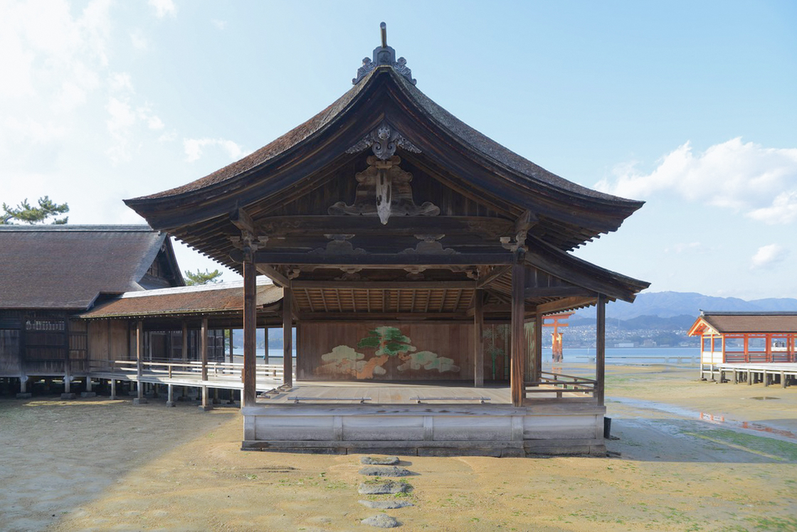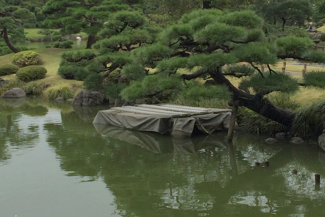 Hamarikyu Garden,Tokyo (high tide)/Itsukushima Noh Theatre (low tide)