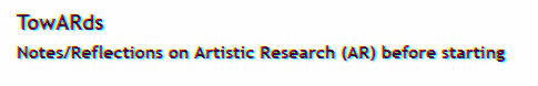 I understand that the term research when it comes to AR should not be synonymous with aesthetic theorization. It is no more operating from and within the traditional scientific protocolary logic which makes successful "theoretical hypothesis/practical experimentation/exegesis". Instead, it follows another processual path of sense-opening (embedding, and even cherishing, here the polyphony of the term senses), fitting more willingly in the process, no longer successive, but simultaneous and iterative, "practice + awareness of the research + contextualization of this processual simultaneity". Writing (in) AR shifts therefore from the fantasy of scholarly writing on and about the practice (although the recovery of speech by artists has been for a number of artists researchers, understandably, an initial claim of AR), to relying henceforth on finding its own register of sensible/sensory/sensual/sensitive enunciation, as well as its milieu/community of resonance and sharing (a recovery of speech too, but resistant to academic mimicry and instead finds one's own voice).