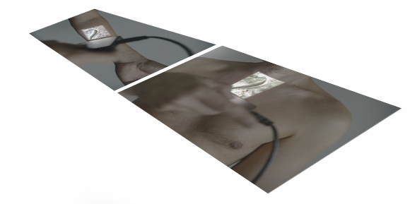 A3 prints, two projections on Simo Kellokumpu's body (projected image: archive of the Carryall project in California (1963)/part of the Plowshare Peaceful Uses for Nuclear Explosions Program