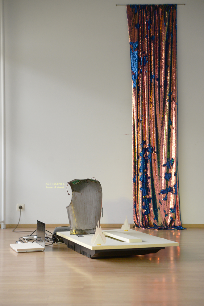 REACCLIMATING THE STAGE (SKENOMORPHOSES) An Ecotonal Doctoral Piece in 40 Scènes, 15 Parergonal Writings and 5 Double-Postcards. From the perspective of mise-en-scène (staging), and correlatively that of the place and the practice of the metteur-en-scène (theatre director), this artistic research project addresses, examines and experiments on the question of the scenic/scenographic representation of a postnatural world, in climate transition, affected by global warming and moved by abstract data-flows, in a tangled web of storms, information, and algorithms. While lived and conceptual "time", no longer telically given as linear and chronological, is being anthropodecentered and, therefore, diffracted into an open plurality, the Reacclimating the Stage (Skenomorphoses) artistic research project takes the earlier notion of time as a raw material to reexamine, from an eco-scenic and research perspective, in order to transform the theatrical practice of its author and to trigger the latter’s specific contribution to artistic research milieu. By obliquely playing on one hand with memories of theatrical history of scenic internal modi operandi, architecture, and literature, and on the other hand with institutional requirements for doctoral research appearance, the project aims at repositioning the director's practice in a movement of transition of scenic thinking and imaginary through a series of artistic and research experiments, whose enactments and resonant redistribution are poetically at interpretative play in this exposition.