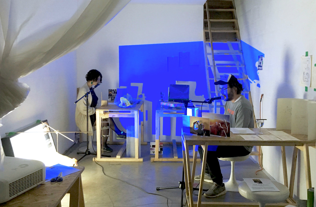 REACCLIMATING THE STAGE (SKENOMORPHOSES) An Ecotonal Doctoral Piece in 40 Scènes, 15 Parergonal Writings and 5 Double-Postcards. From the perspective of mise-en-scène (staging), and correlatively that of the place and the practice of the metteur-en-scène (theatre director), this artistic research project addresses, examines and experiments on the question of the scenic/scenographic representation of a postnatural world, in climate transition, affected by global warming and moved by abstract data-flows, in a tangled web of storms, information, and algorithms. While lived and conceptual "time", no longer telically given as linear and chronological, is being anthropodecentered and, therefore, diffracted into an open plurality, the Reacclimating the Stage (Skenomorphoses) artistic research project takes the earlier notion of time as a raw material to reexamine, from an eco-scenic and research perspective, in order to transform the theatrical practice of its author and to trigger the latter’s specific contribution to artistic research milieu. By obliquely playing on one hand with memories of theatrical history of scenic internal modi operandi, architecture, and literature, and on the other hand with institutional requirements for doctoral research appearance, the project aims at repositioning the director's practice in a movement of transition of scenic thinking and imaginary through a series of artistic and research experiments, whose enactments and resonant redistribution are poetically at interpretative play in this exposition.