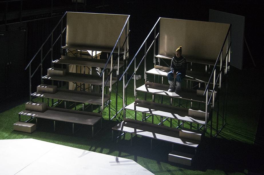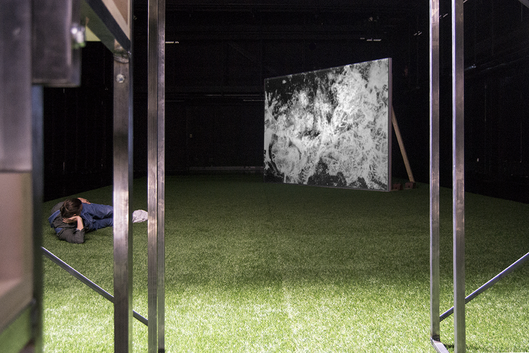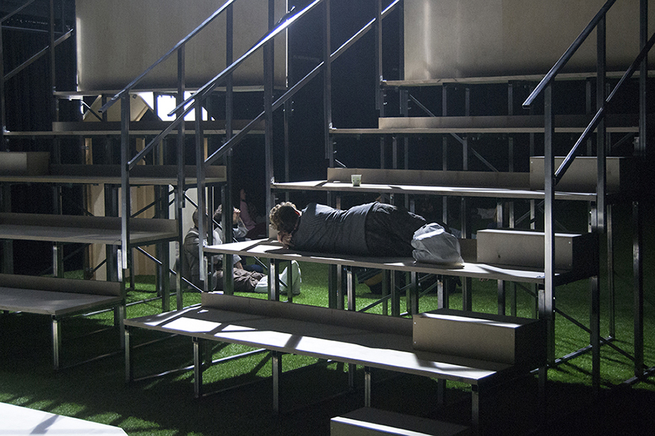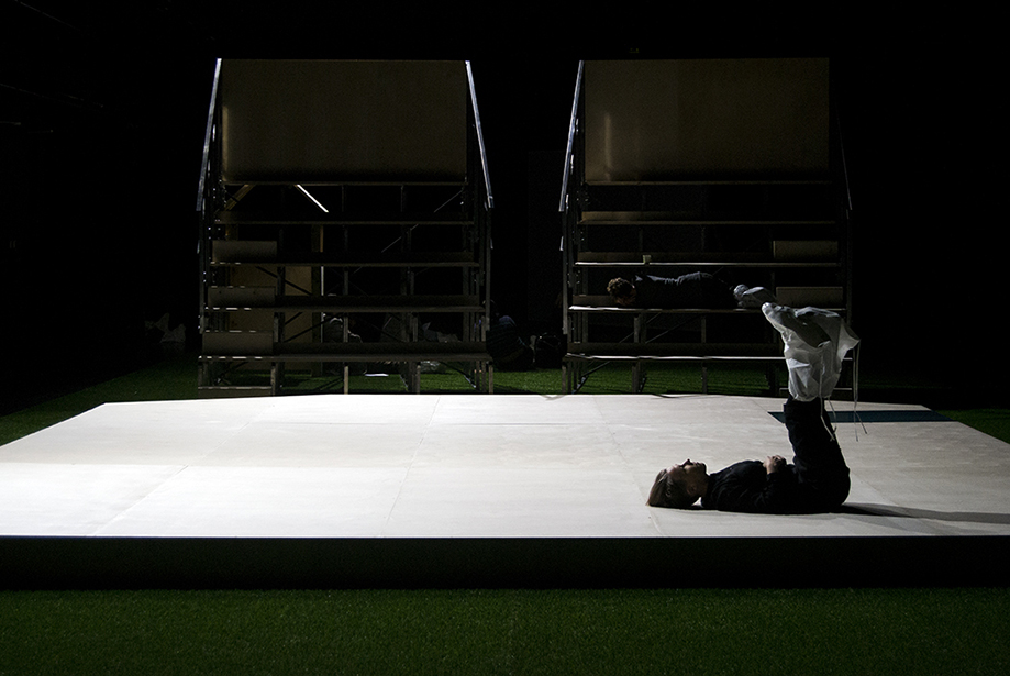 REACCLIMATING THE STAGE (SKENOMORPHOSES) An Ecotonal Doctoral Piece in 40 Scènes, 15 Parergonal Writings and 5 Double-Postcards. From the perspective of mise-en-scène (staging), and correlatively that of the place and the practice of the metteur-en-scène (theatre director), this artistic research project addresses, examines and experiments on the question of the scenic/scenographic representation of a postnatural world, in climate transition, affected by global warming and moved by abstract data-flows, in a tangled web of storms, information, and algorithms. While lived and conceptual "time", no longer telically given as linear and chronological, is being anthropodecentered and, therefore, diffracted into an open plurality, the Reacclimating the Stage (Skenomorphoses) artistic research project takes the earlier notion of time as a raw material to reexamine, from an eco-scenic and research perspective, in order to transform the theatrical practice of its author and to trigger the latter’s specific contribution to artistic research milieu. By obliquely playing on one hand with memories of theatrical history of scenic internal modi operandi, architecture, and literature, and on the other hand with institutional requirements for doctoral research appearance, the project aims at repositioning the director's practice in a movement of transition of scenic thinking and imaginary through a series of artistic and research experiments, whose enactments and resonant redistribution are poetically at interpretative play in this exposition.