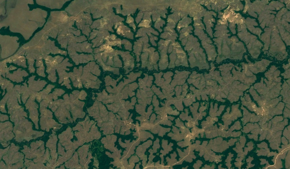 A capillary network of streams and rivers, surrounded by narrow strips of forest – the bosques de galería – criss-crosses the plain and, seen from above, traces the contours of a fractal design over the land.