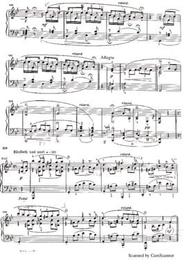 rec. 10a: In this recording I was influenced by one part of Jean Paul's definition of "wit"- the ability to recognize similarity between apparently unrelated concepts. The "Noch rascher" is quite is quite clearly divided into two sections, with the second, fanfare-like part beginning after the fermata in bar 104.