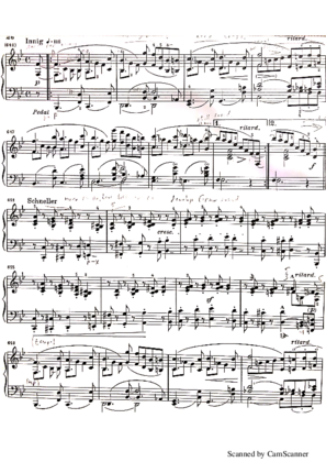 This version convinces me more- especially the transition and opening measures, where the stark, contrasting character is established immediately thanks to the more stable rhythm. Perhaps the "serious" aspects of the music here are too dominant to be downplayed into "whimsy", and the irony is best allowed to speak for itself? In any case, I have the impression that the general intensification of the music which Schumann indicates is key here- it should be produced in an even more obsessively stable manner.