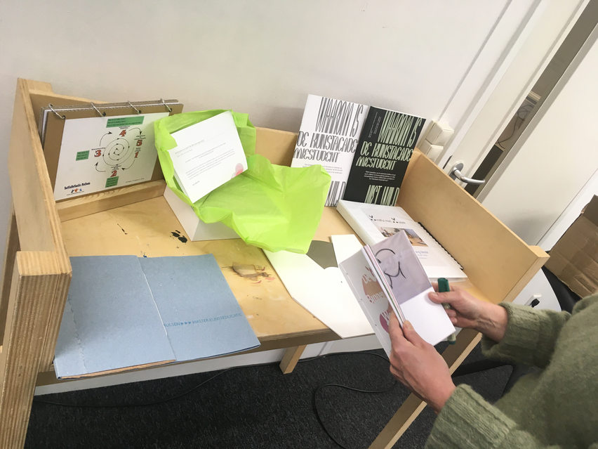 Lokaal E.201 is beschikbaar als open werkplek en voor (peer)gesprekken, er is een inschrijflijst voor studenten en docenten met onderwerpen/expertise, aanwezigheid en tijd. MKE alumni en starters zijn ook uitgenodigd. Je kunt de docenten, studiecoach en de afstudeercoördinator altijd aanschieten voor een kleine of grote vraag.